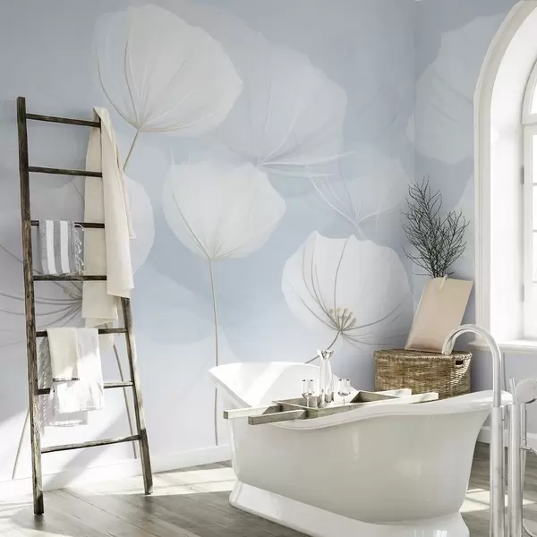 Papel tapiz Flores blancas y aireadas sobre fondo azul Nr. w04580