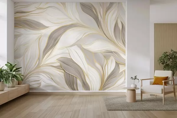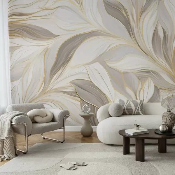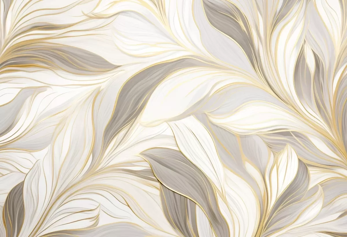 Papel tapiz Hojas con curvas suaves en tonos beige claro y grisáceos Nr. w04609