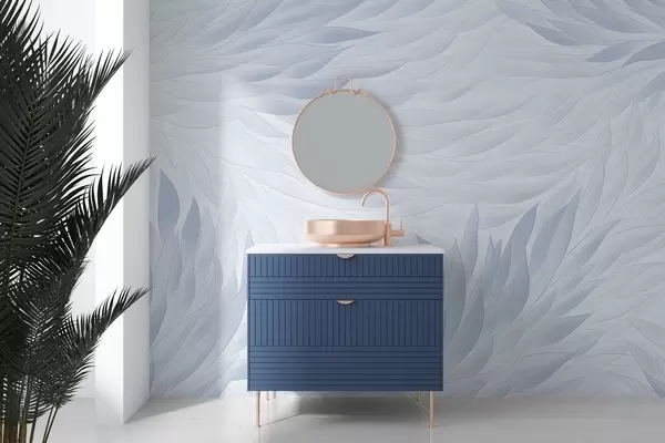 Papel tapiz Hojas onduladas en tonos azul claro Nr. w04610v1