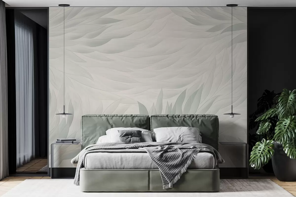 Papel tapiz Hojas onduladas en suaves tonos verde-beige Nr. w04610v2