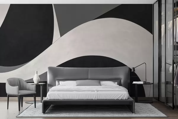 murales de pared Abstracción en negro y gris con una suave onda w04615