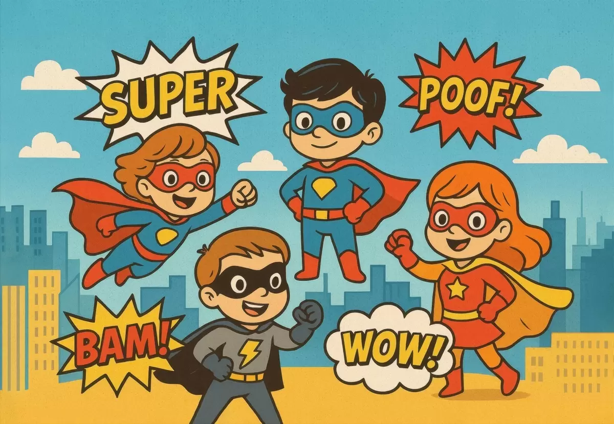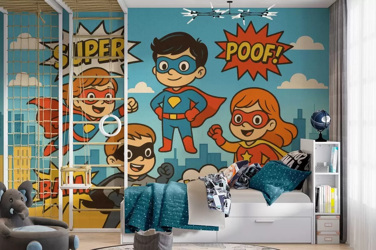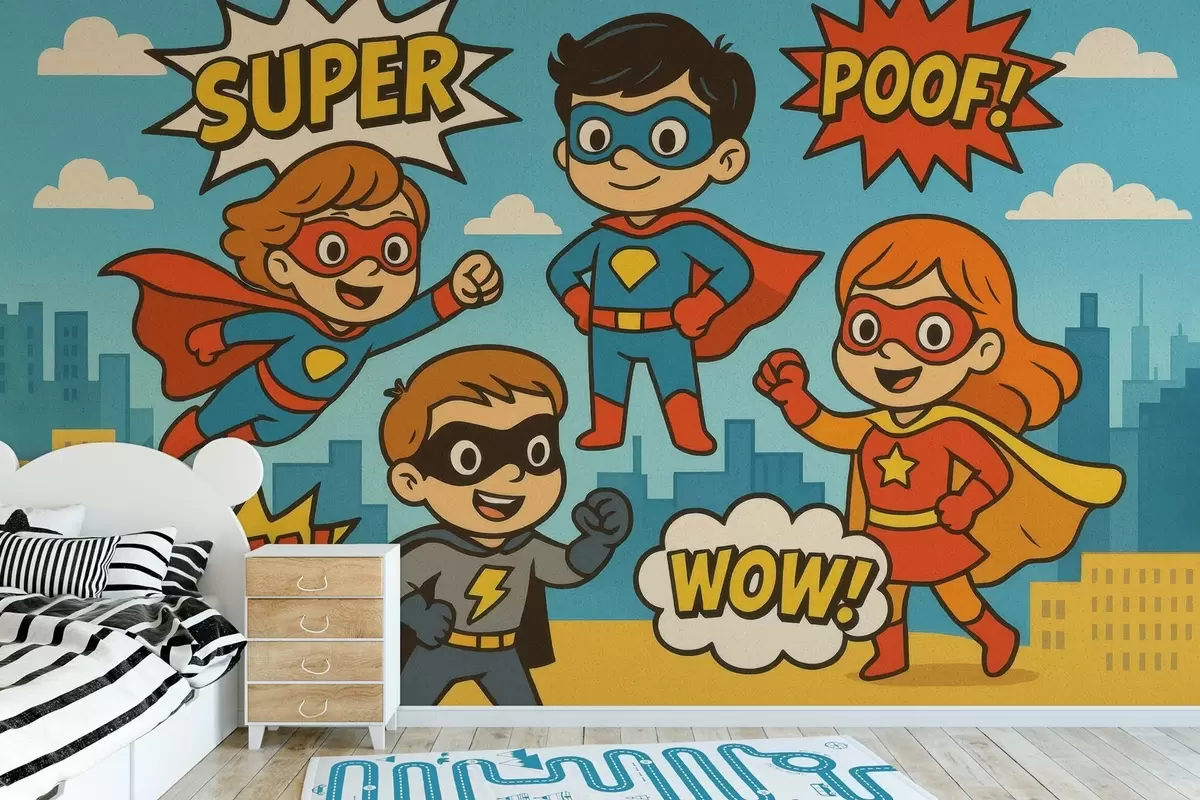 Papel tapiz divertidos superhéroes al estilo de los cómics Nr. w04625