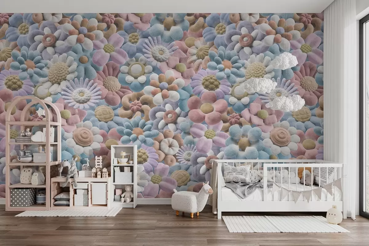 Papel tapiz flores esponjosas en colores pastel Nr. w04626v1