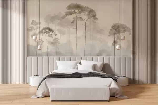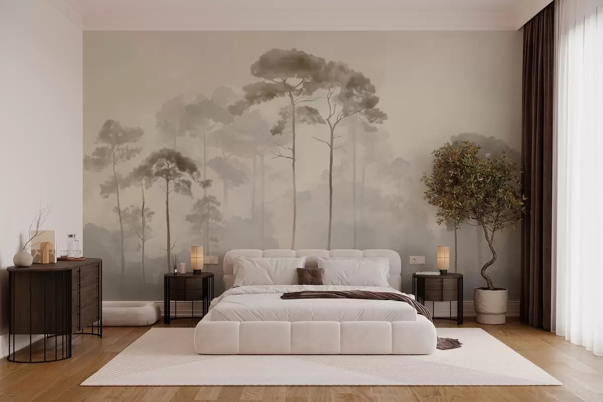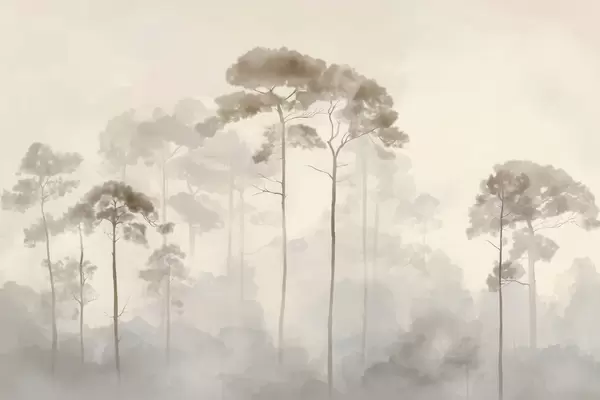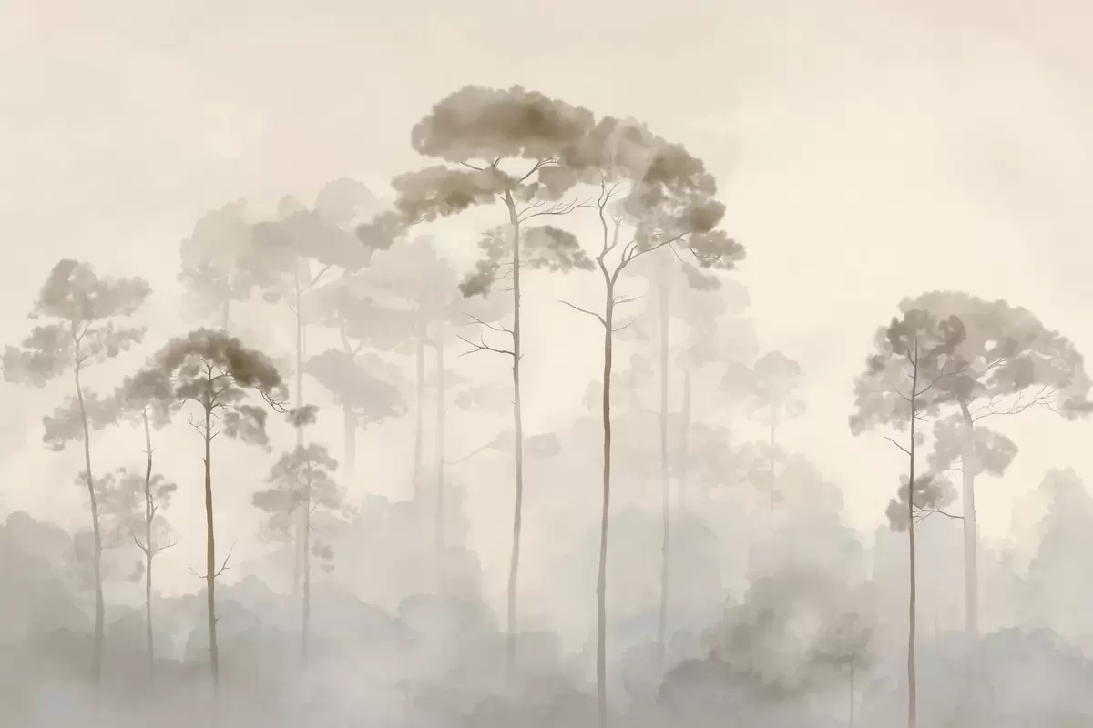 Papel tapiz siluetas ligeras de pinos en estilo acuarela Nr. w04634