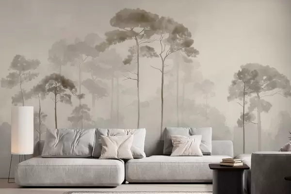 Papel tapiz siluetas ligeras de pinos en estilo acuarela Nr. w04634
