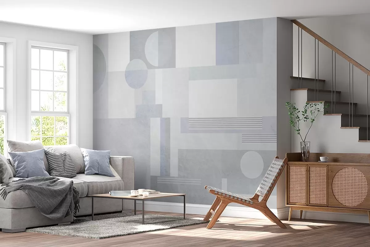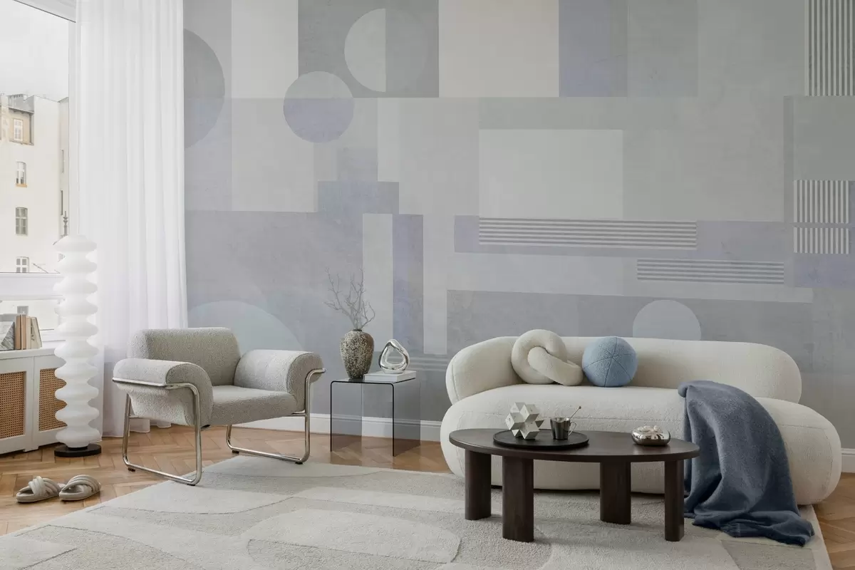 Papel tapiz geometría abstracta en tonos gris azulados Nr. w04635v2