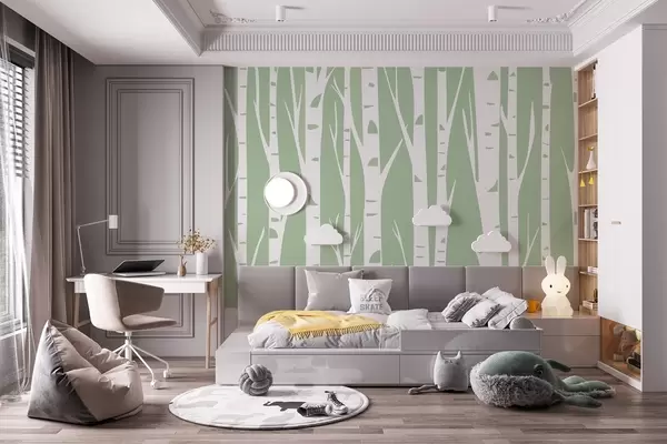 Se puede limpiar suavemente con una esponja suave. Los murales de pared con recubrimiento de barniz pueden limpiarse con agua.