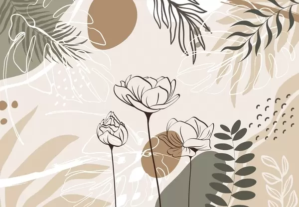 Papel tapiz Flores y hojas abstractas. Nr. w04662