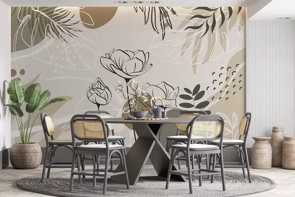 Papel tapiz Flores y hojas abstractas. Nr. w04662
