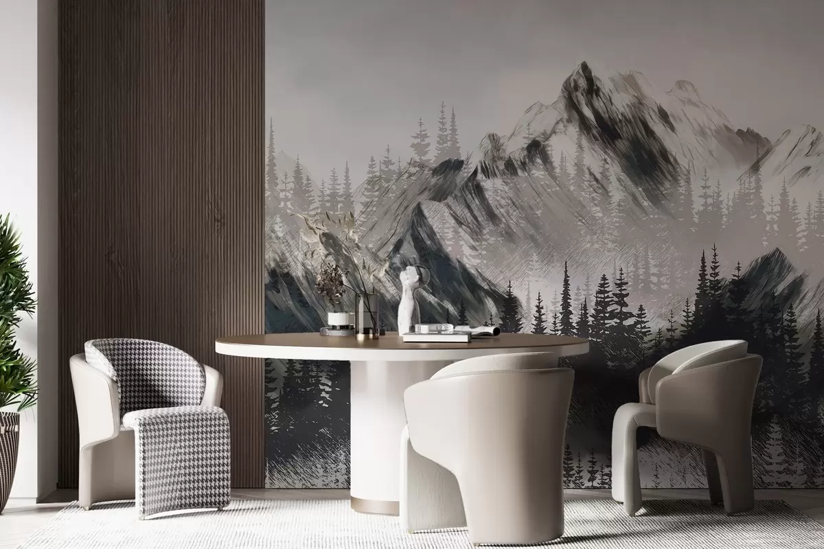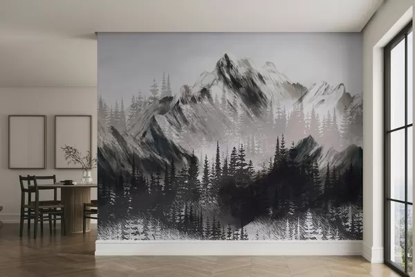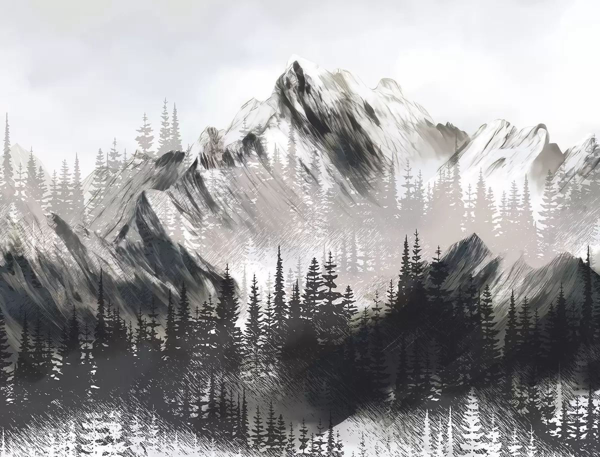 Papel tapiz Montañas y bosques de coníferas Nr. w04666