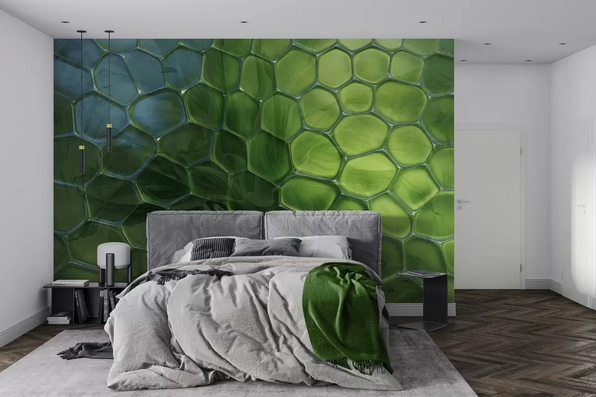 Papel tapiz Hojas a través de panales de cristal Nr. w04667