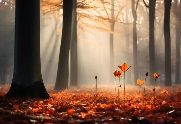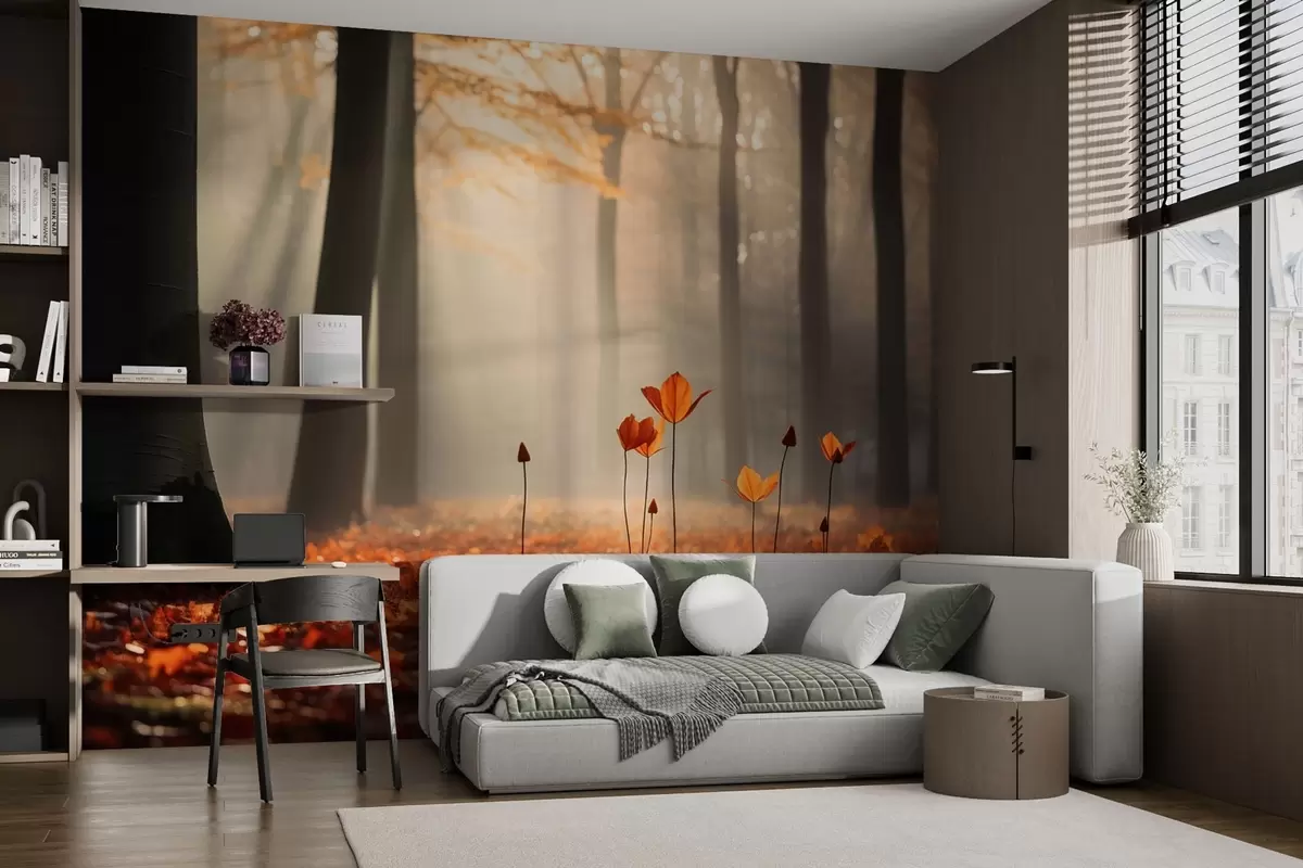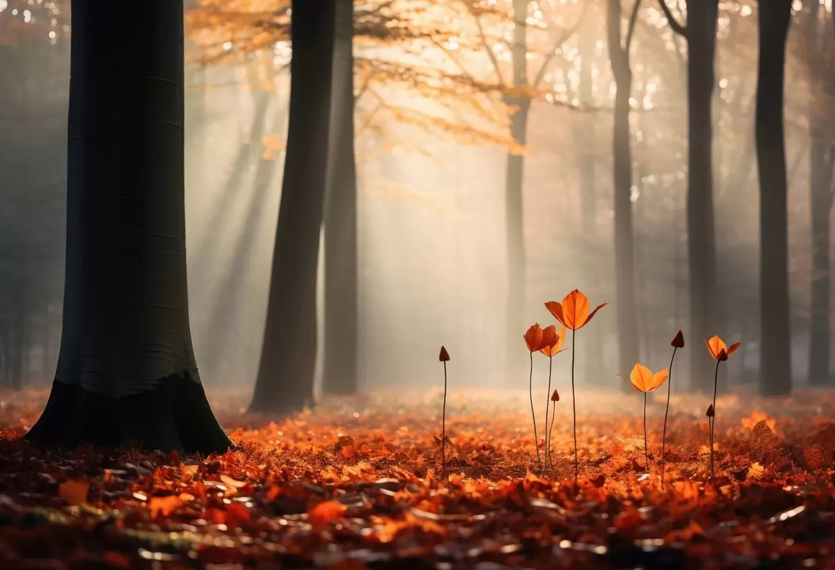 Papel tapiz Bosque otoñal con rayos de sol y follaje brillante Nr. w04710