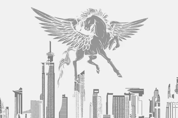 Papel tapiz Pegaso sobre la ciudad Nr. w04777