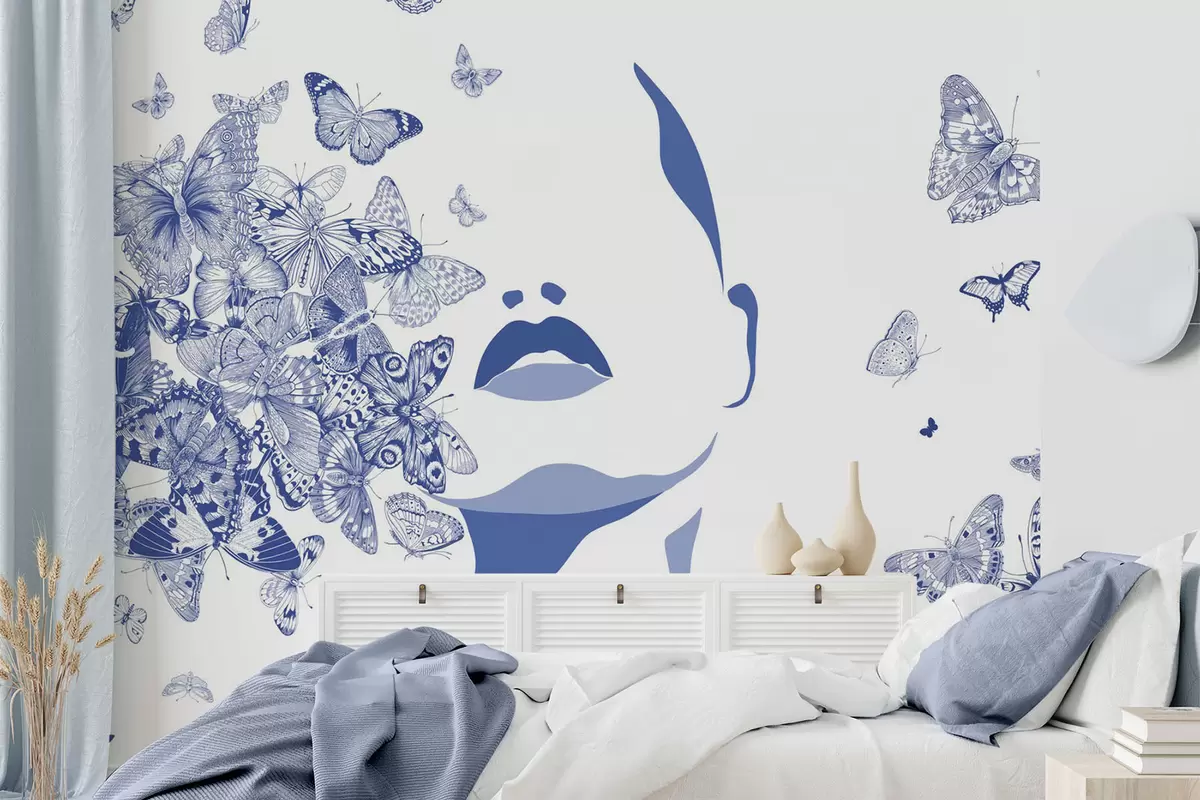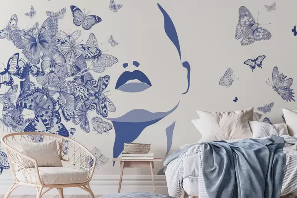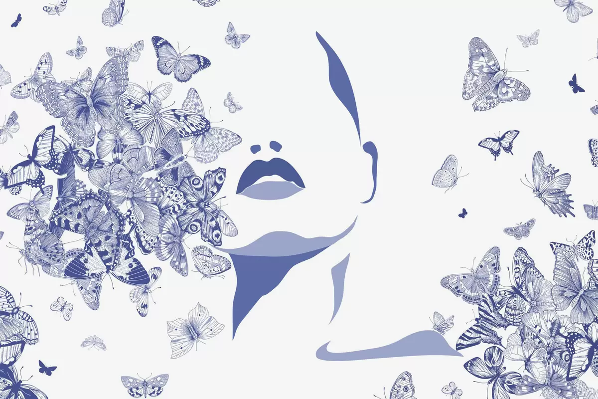 Papel tapiz Silueta de un rostro entre mariposas Nr. w04778v1
