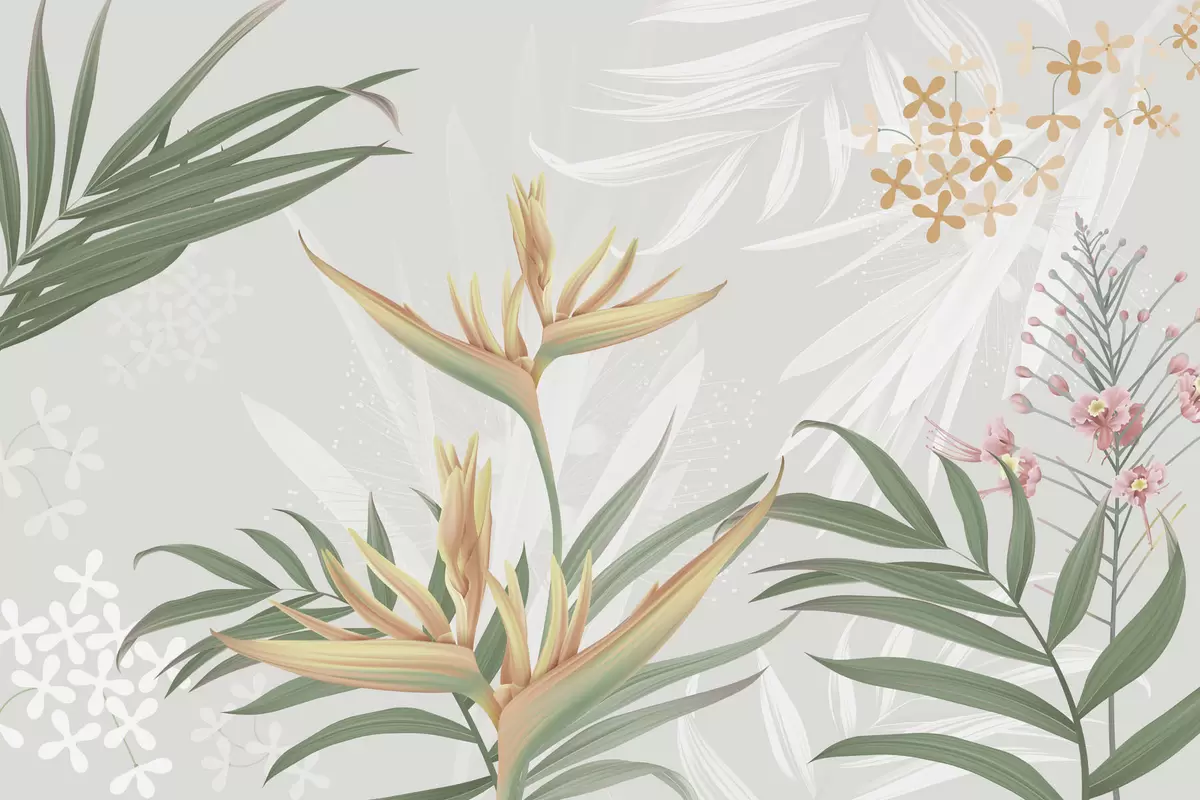 Papel tapiz Exóticas flores de Strelitzia entre el follaje Nr. w04783