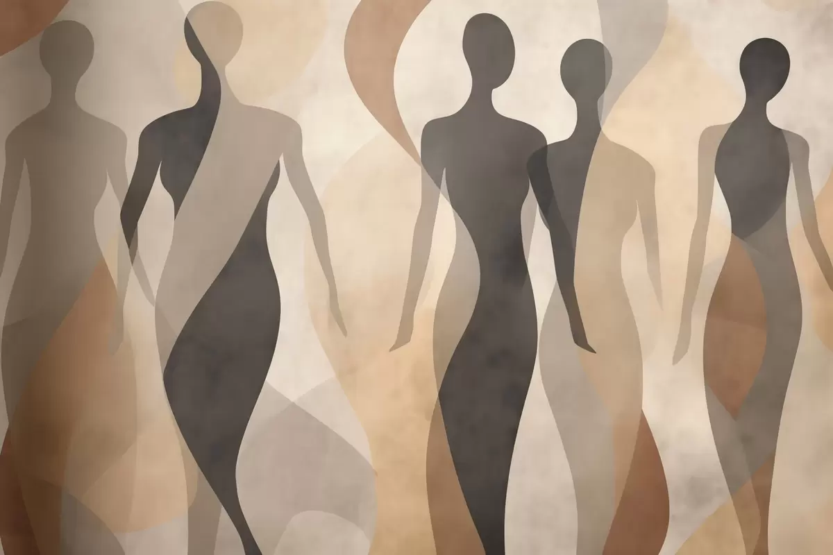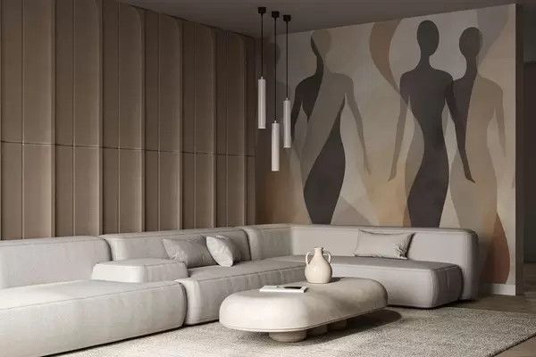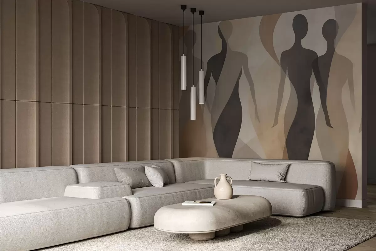 Papel tapiz Siluetas y suaves ondas en cálidos tonos beige grisáceos. Nr. w04787