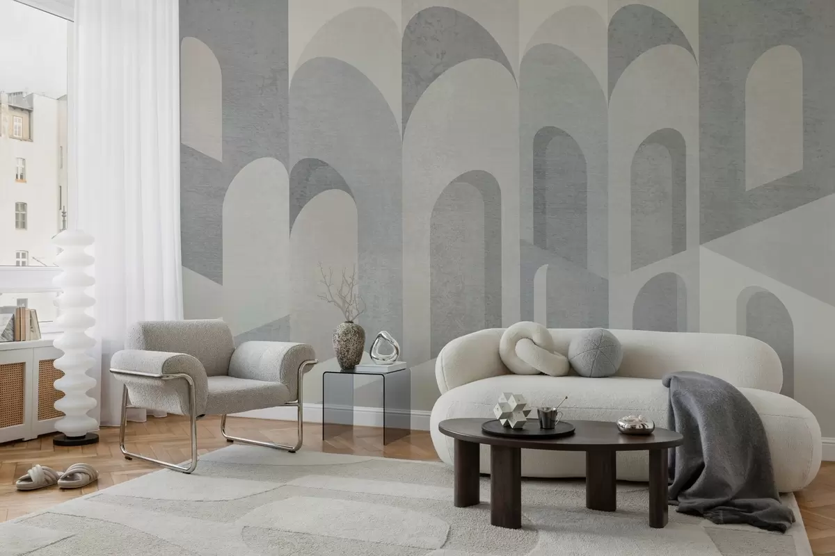 Papel tapiz metamorfosis urbanas del arco en tonos grises y beige frío Nr. w04812v1