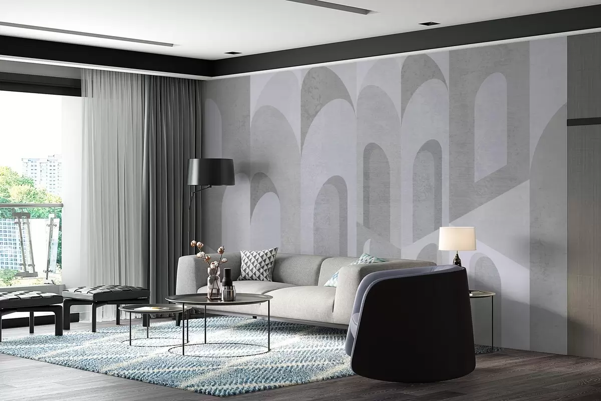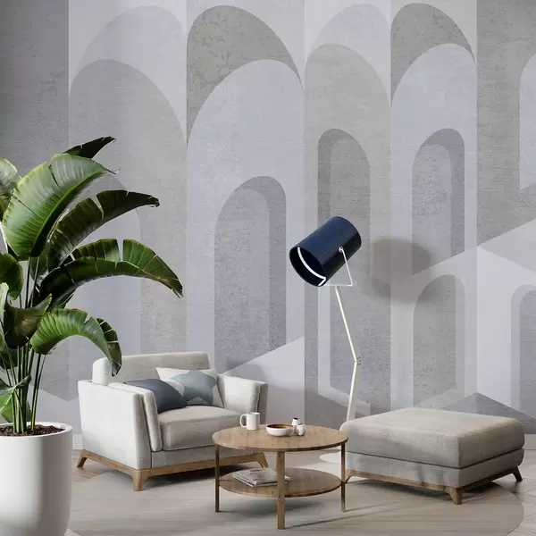 Papel tapiz metamorfosis urbanas del arco en tonos grises y azules Nr. w04812v2
