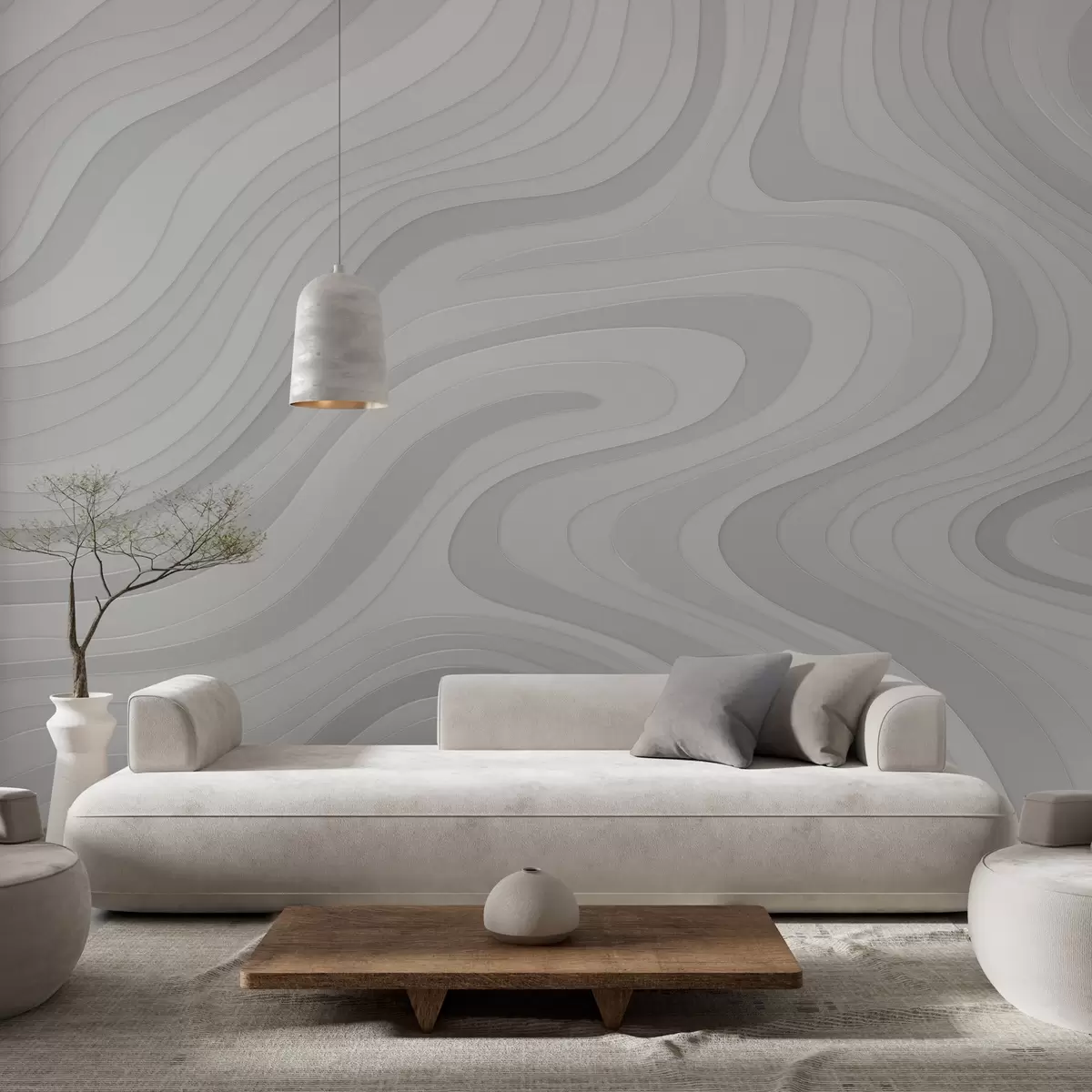 Papel tapiz ondas abstractas en tonos grises Nr. w04813v1