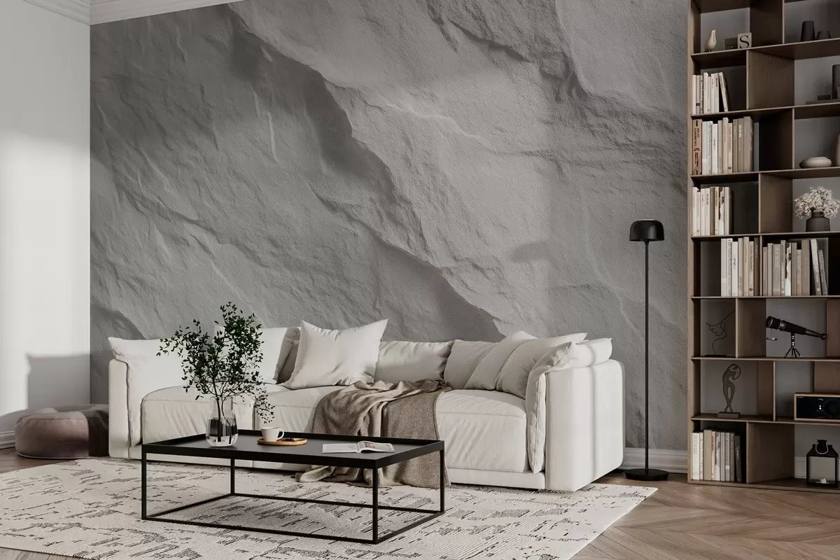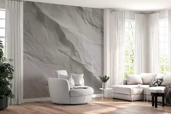 Papel tapiz imitación de roca blanca en diseño de interiores Nr. w04818