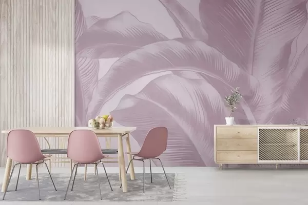 murales de pared Hojas largas, hojas de plátano con efecto desgastado. w04827v2