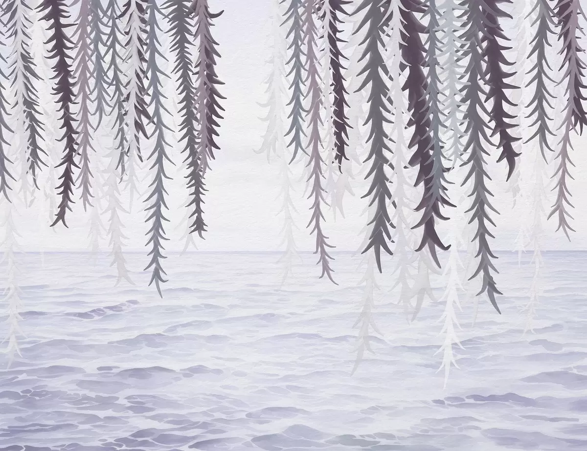 Papel tapiz Delicadas enredaderas colgando sobre el agua, estilo acuarela. Nr. w04830v1