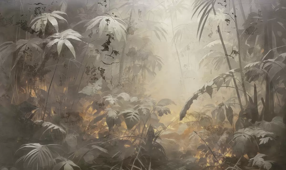 Papel tapiz Selva pintada detrás de un muro de hormigón grunge Nr. w04833
