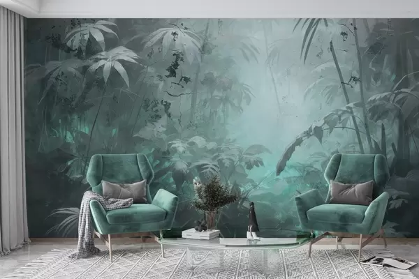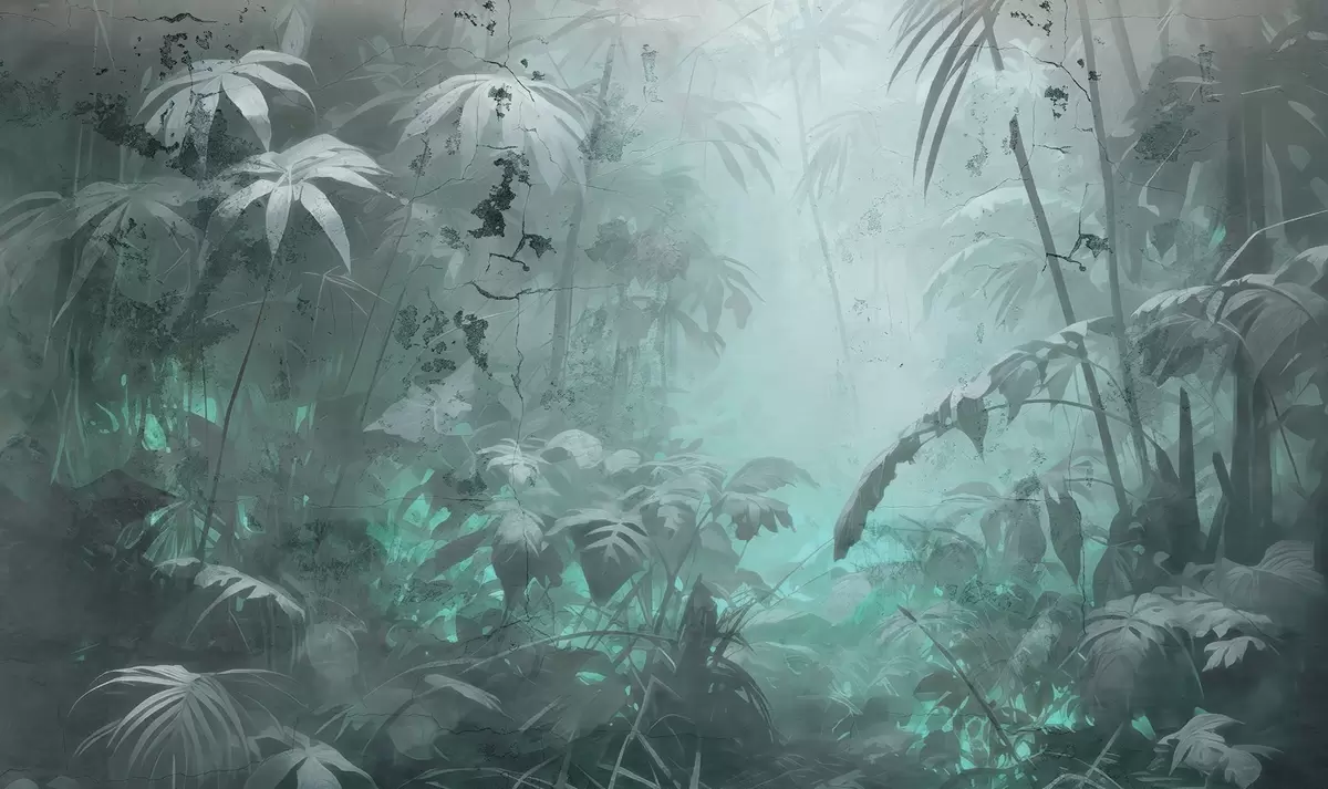 Papel tapiz Selva pintada detrás de un muro de hormigón grunge Nr. w04833v1