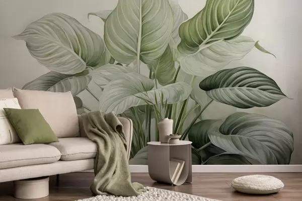 Papel tapiz Exuberante arbusto de hojas verdes en la pared Nr. w04835