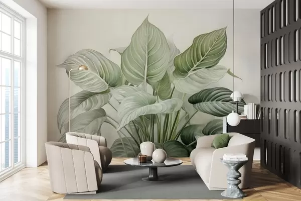 murales de pared Exuberante arbusto de hojas verdes en la pared w04835