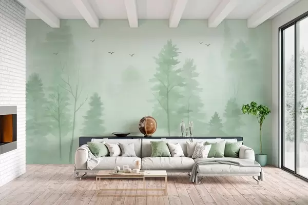 Papel tapiz Bosque aéreo en tonos verdes, estilo acuarela. Nr. w04872v1
