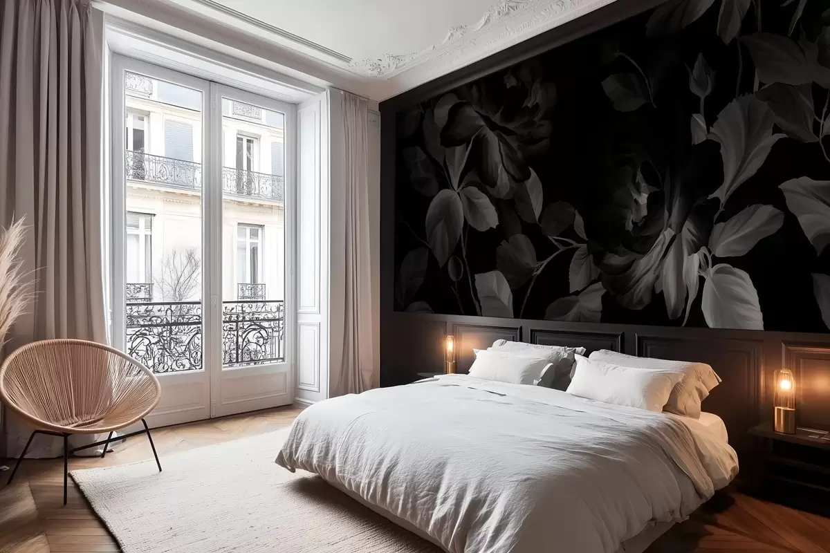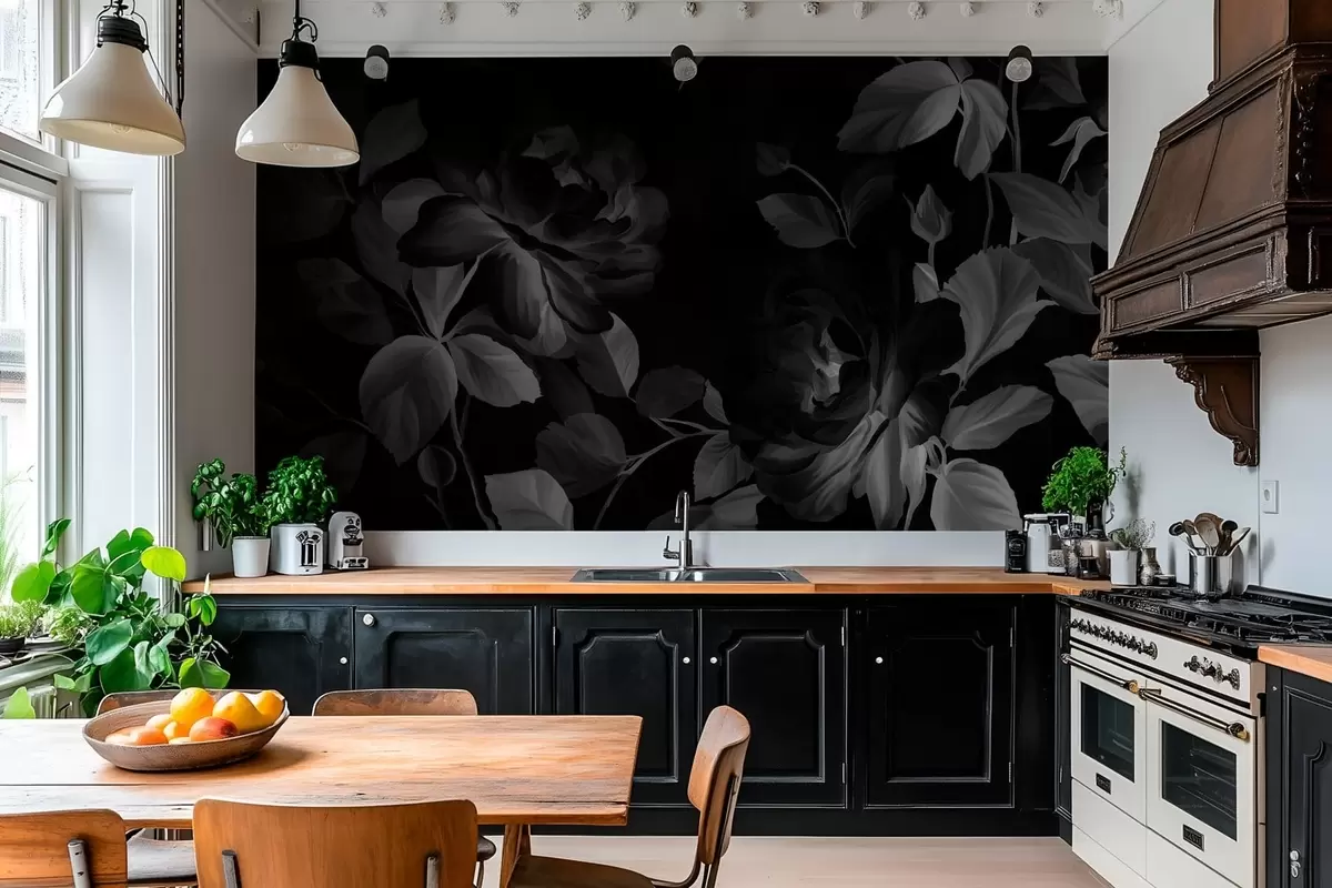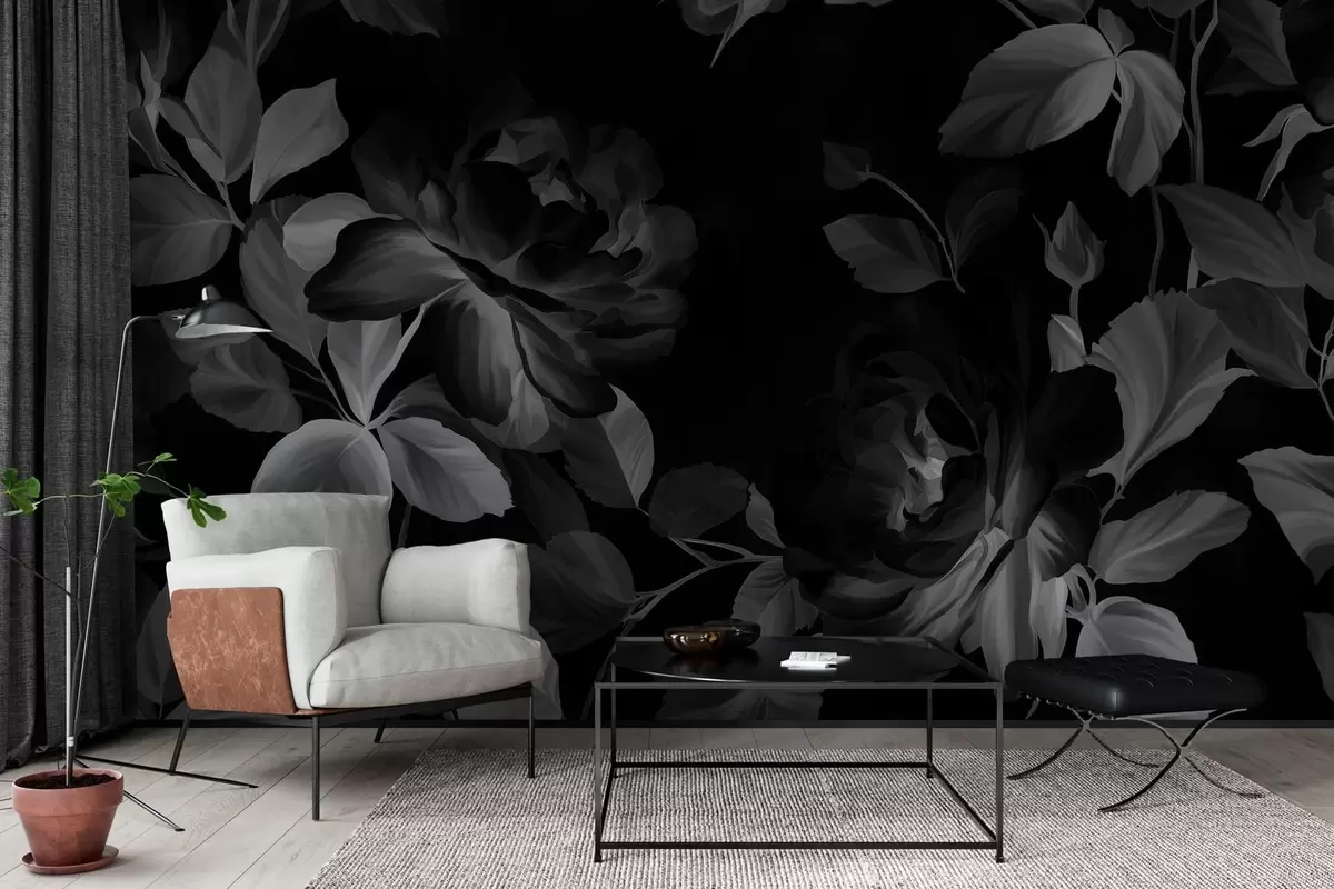 Papel tapiz Rosas pintorescas en blanco y negro al estilo de la pintura al óleo. Nr. w04873v1