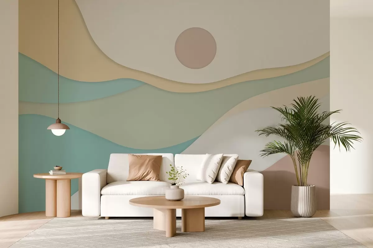 Papel tapiz Abstracción minimalista con formas suaves y onduladas que recuerdan paisajes fluidos y dunas. Nr. w04874