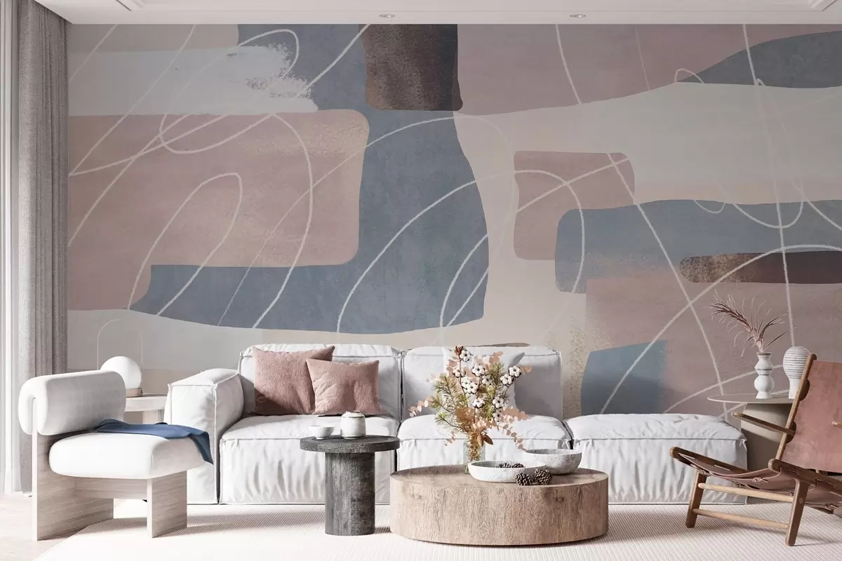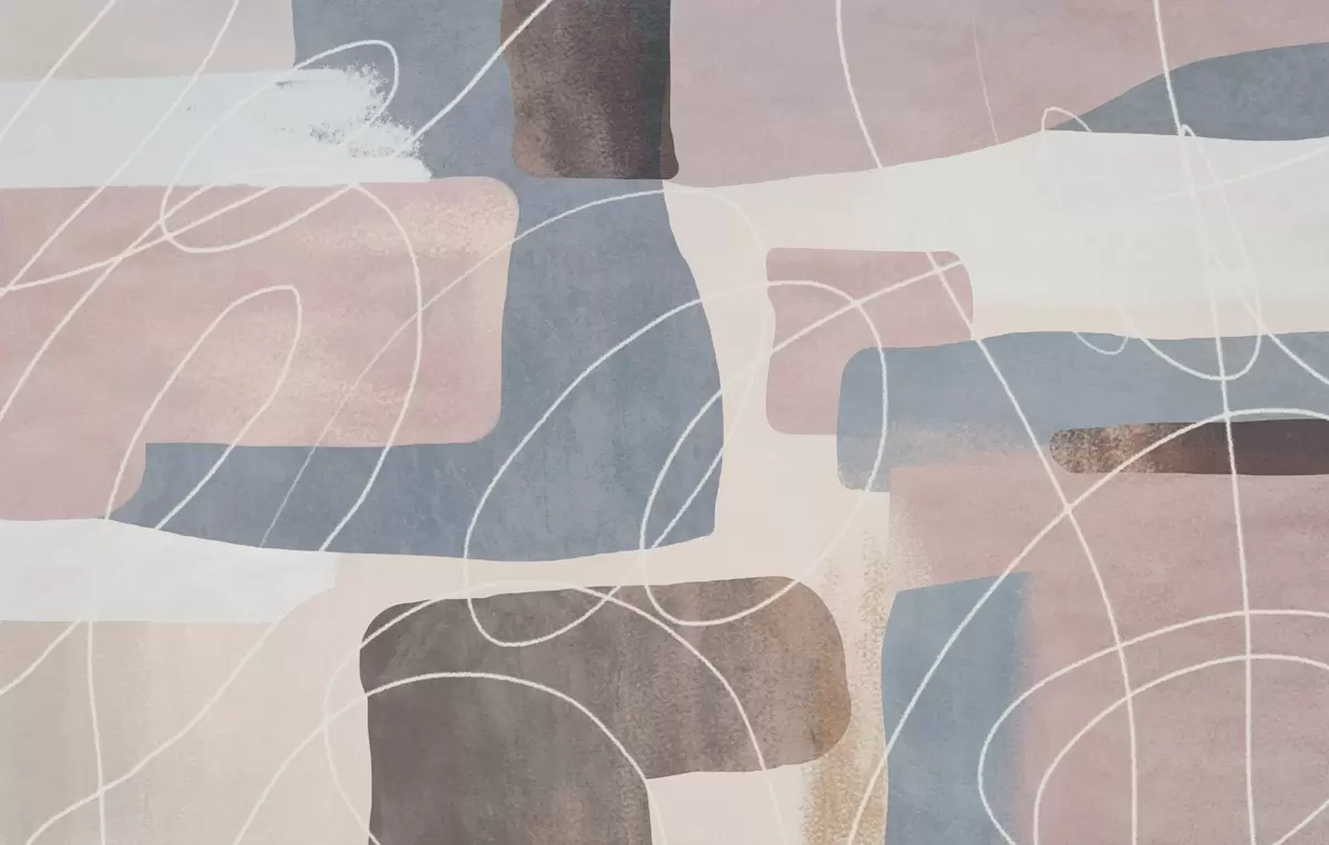 Papel tapiz abstracción moderna en tonos rosa empolvado, gris azulado, beige y marrón Nr. w04877