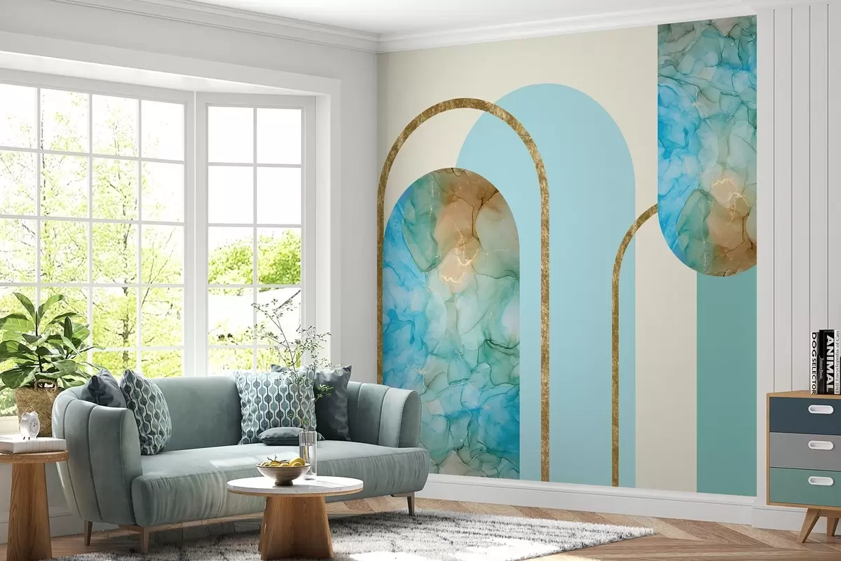 Papel tapiz elegantes arcos con imitación de mármol en estilo art déco Nr. w04879
