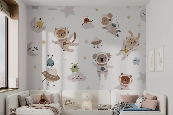 Se puede limpiar suavemente con una esponja suave. Los murales de pared con recubrimiento de barniz pueden limpiarse con agua.