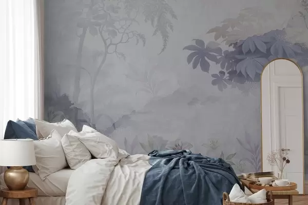 Papel tapiz Delicado jardín pintado con acuarelas en un amanecer brumoso Nr. w04934