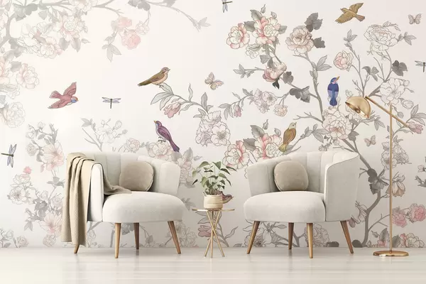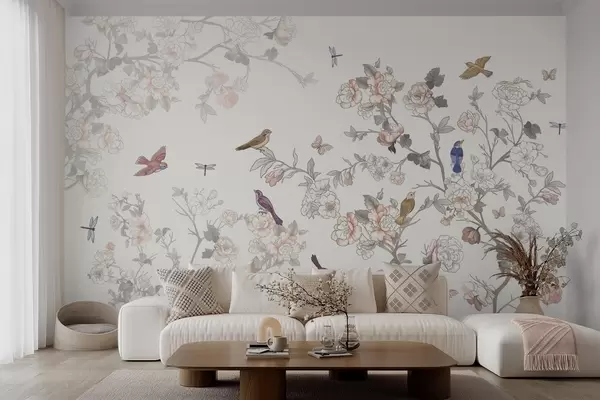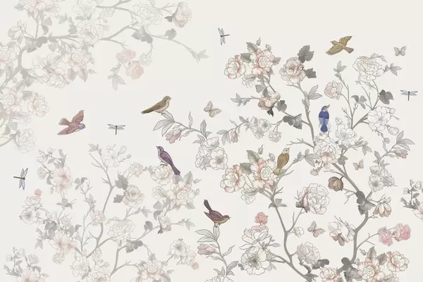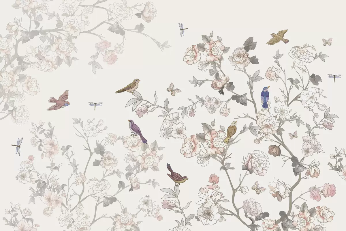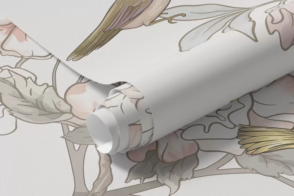 Papel tapiz Pájaros cerca de ramas con flores Nr. w04939