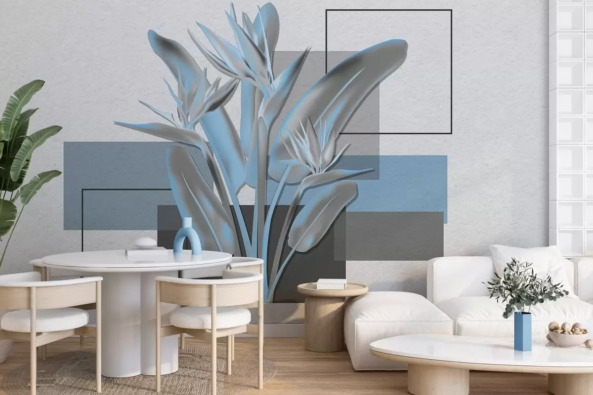 Papel tapiz Strelitzia y geometría Nr. w04949