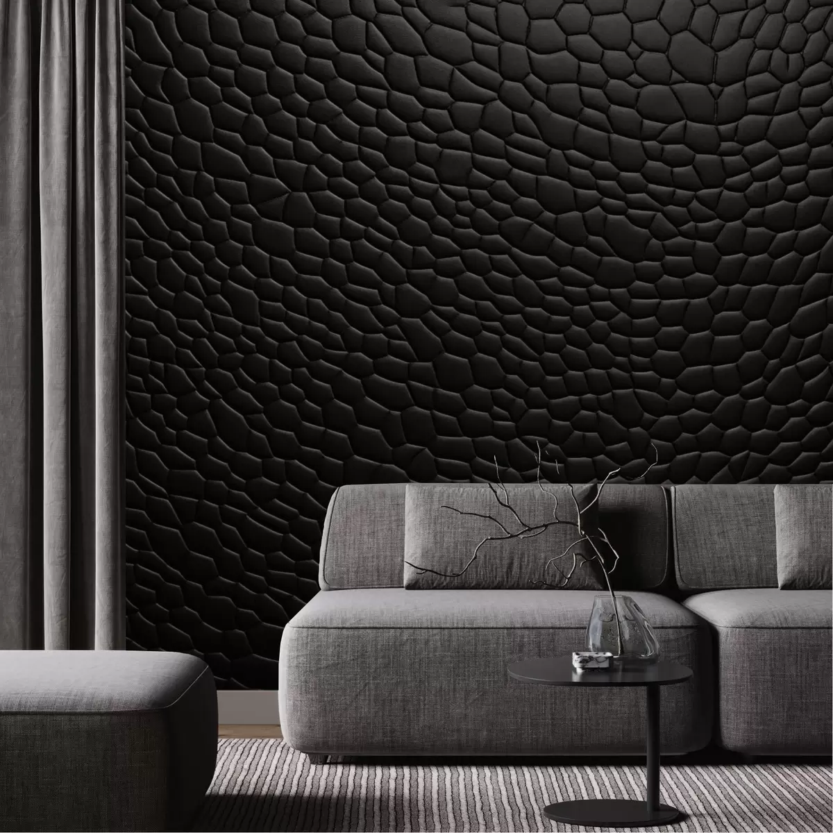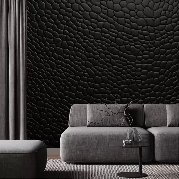 Papel tapiz Mosaico negro con suave relieve tridimensional. Nr. w04955