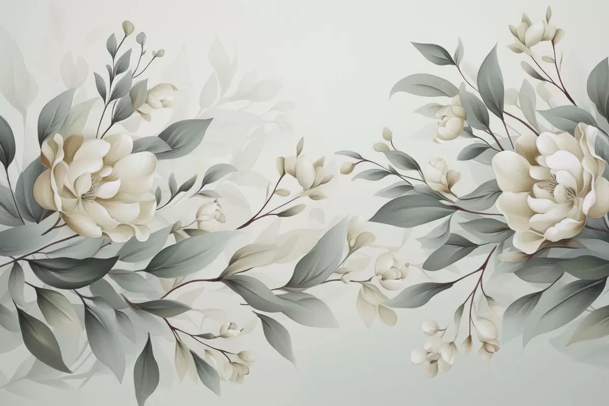 Papel tapiz Follaje con flores Nr. w04976