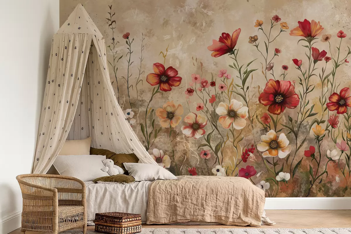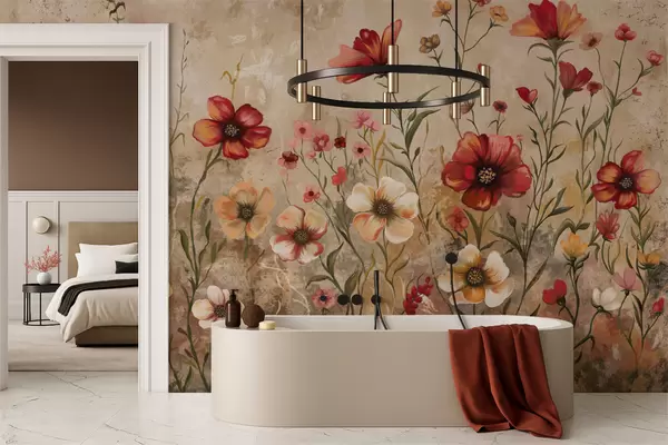 Papel tapiz Composición floral con fondo texturizado en tonos cálidos Nr. w05016
