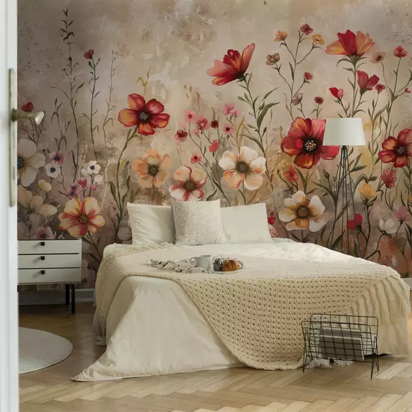 Papel tapiz Composición floral con fondo texturizado en tonos cálidos Nr. w05016