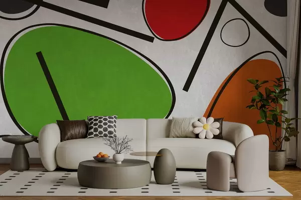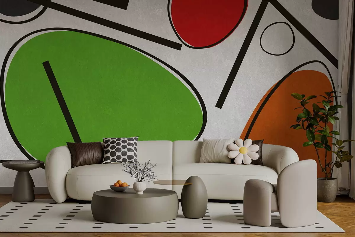 Papel tapiz Formas geométricas abstractas con líneas y áreas de colores vivos. Nr. w05017v1