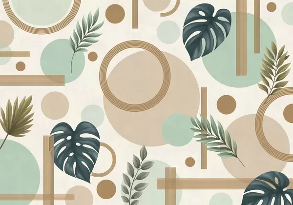 Papel tapiz Diseño geométrico con hojas y círculos en tonos suaves. Nr. w05018