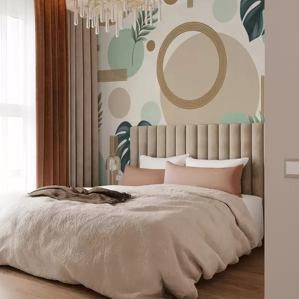 Papel tapiz Patrón geométrico con hojas en tonos verdes. Nr. w05018v1