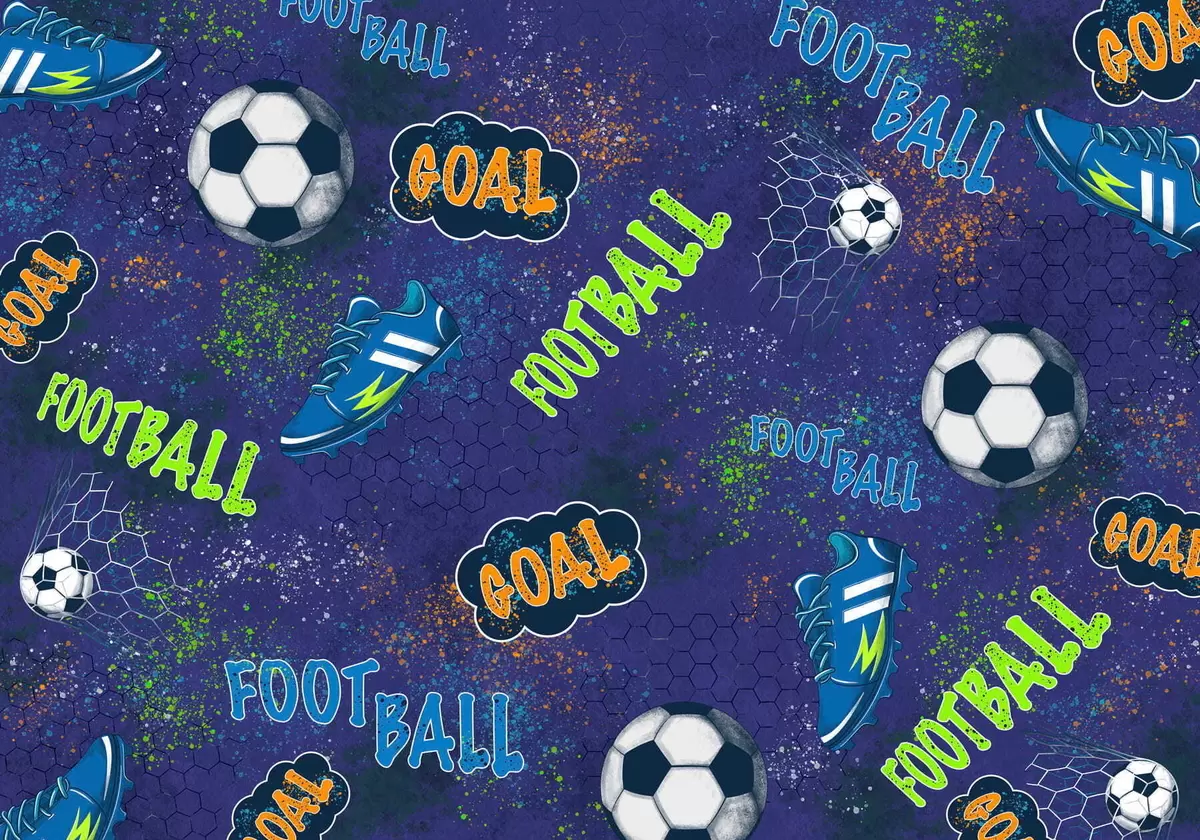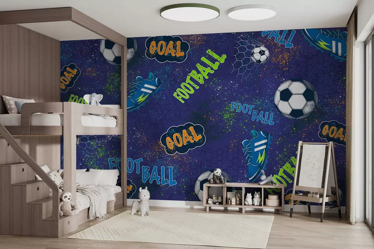 Papel tapiz Patrón de fútbol infantil en tonos azul oscuro Nr. w05037v3