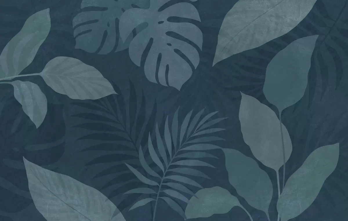 Papel tapiz hojas tropicales texturizadas sobre un fondo azul oscuro Nr. w05063v3