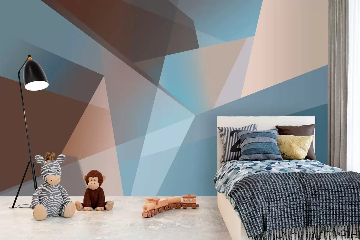 Papel tapiz geometría abstracta en tonos azules y marrones Nr. w05064