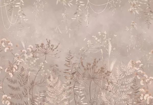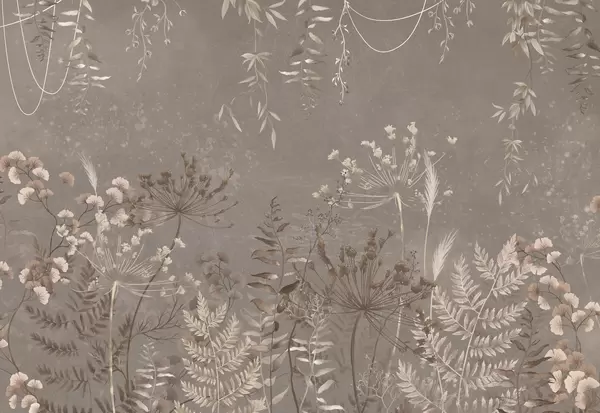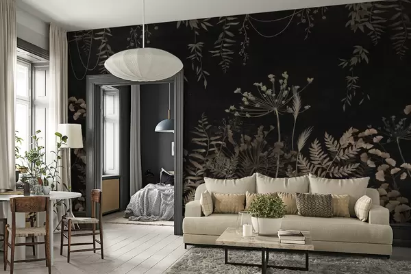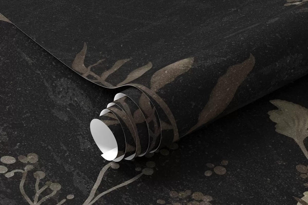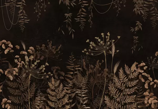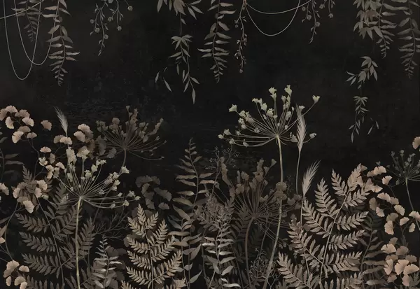 Papel tapiz Diseño botánico oscuro con flores y hojas. Nr. w05092